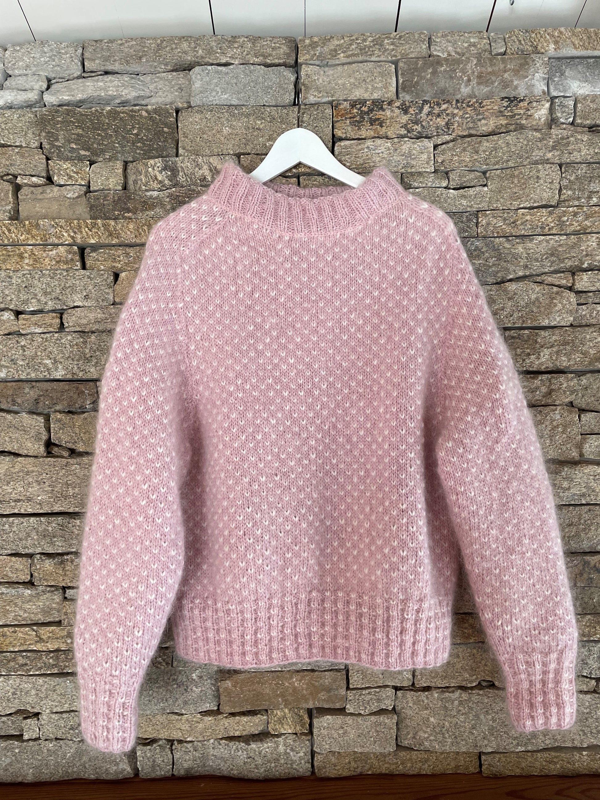 Du trenger: Store og små rundpinner nr. 5 og 6 + strikkepinner nr. 5 til vrangborden på ermene.