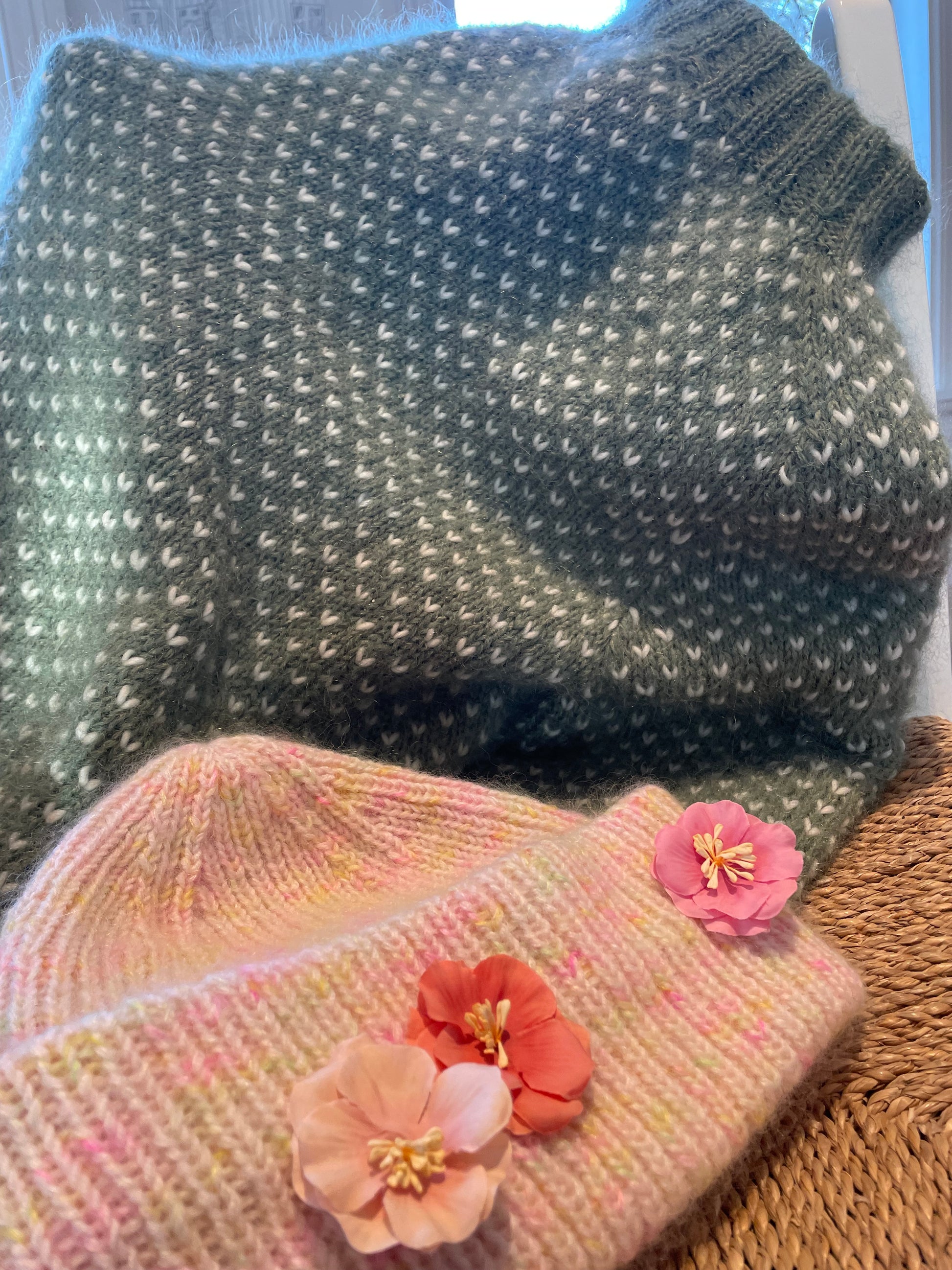 Garnforslag: Tynn merino + 2 tråder silk mohair (ca 235m). Ønsker du mindre fluff og volum? Ta bort den ene mohairtråden og strikk på pinne 3,5 hele tiden.